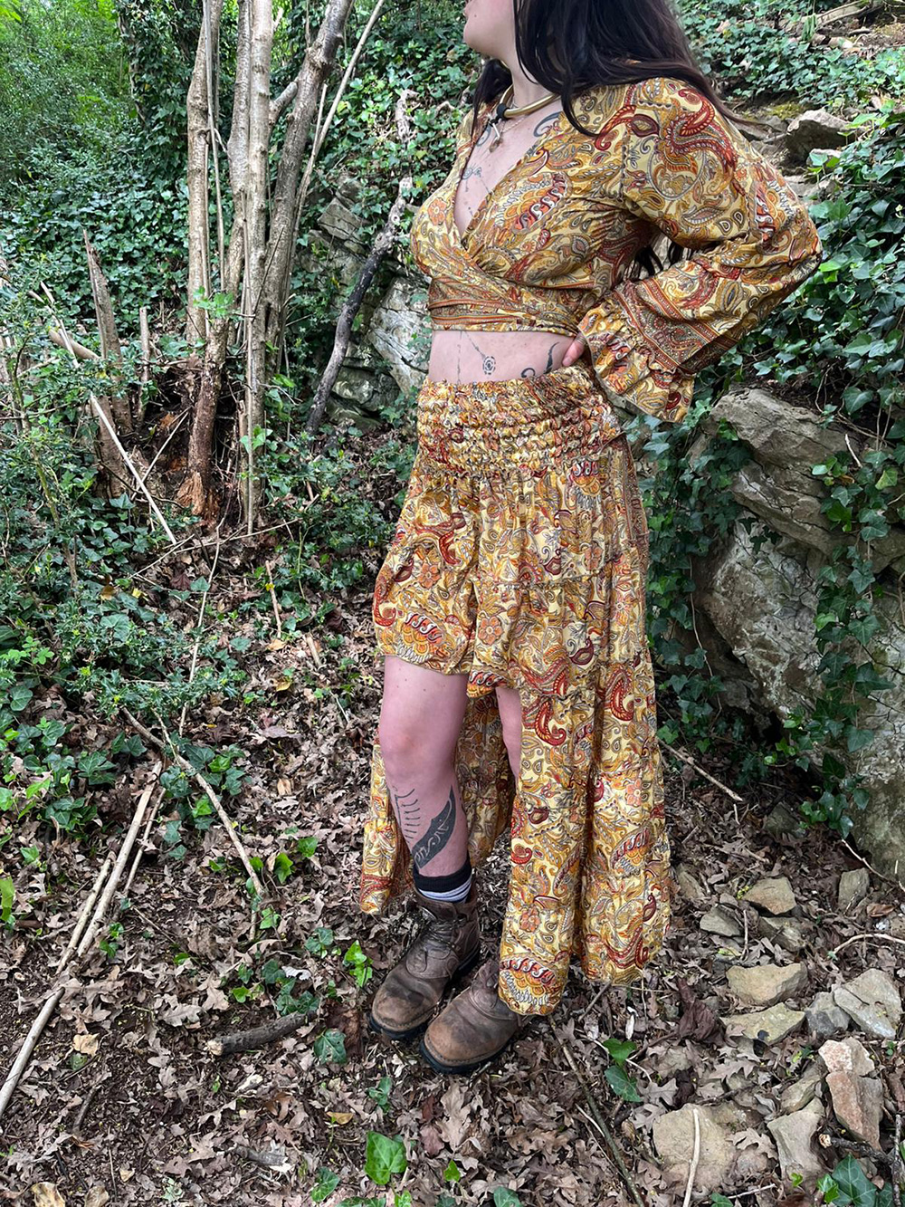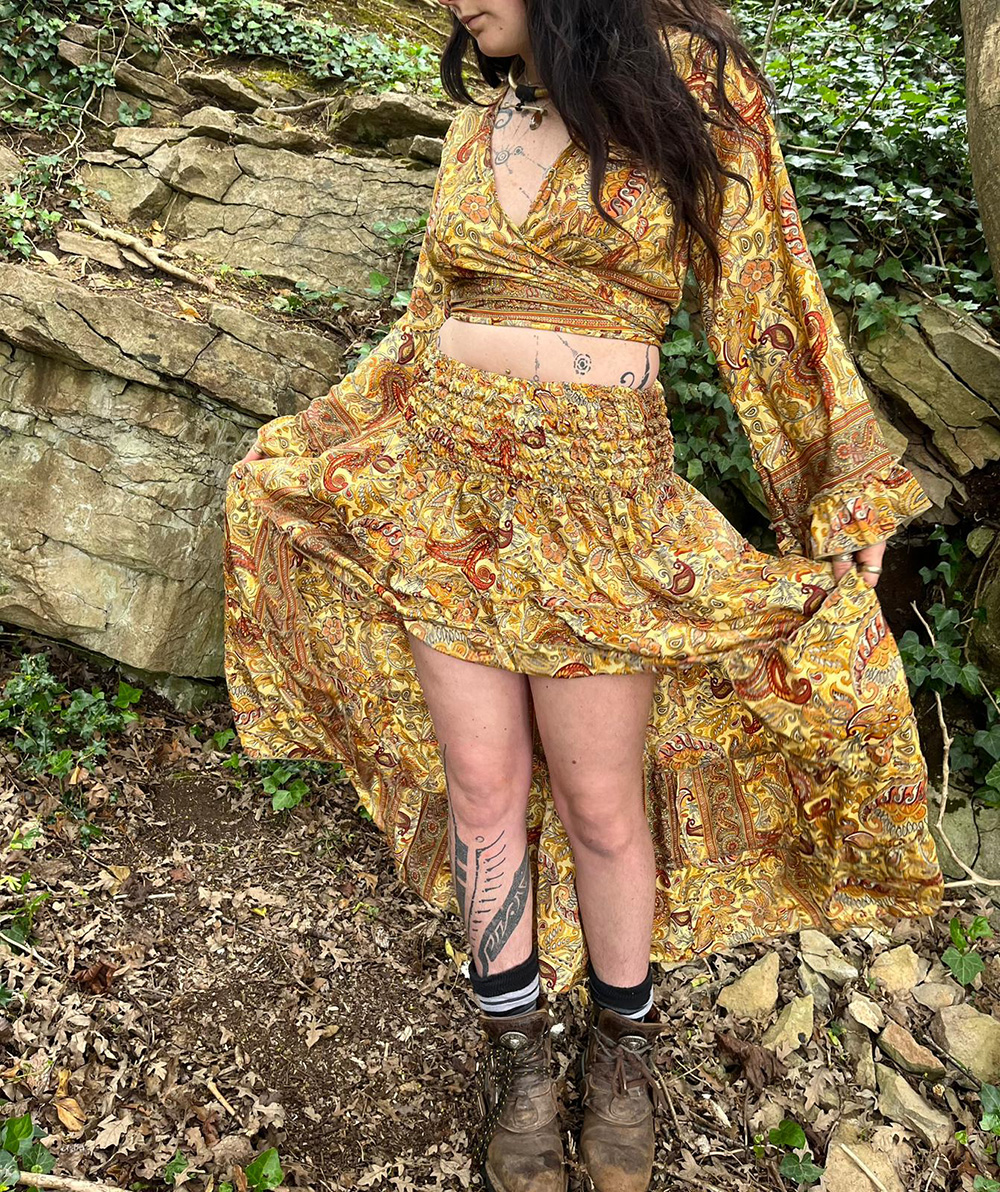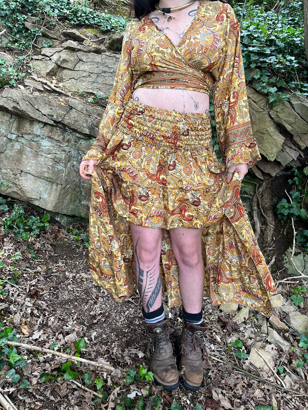 2 PCs Skirt and front tie top